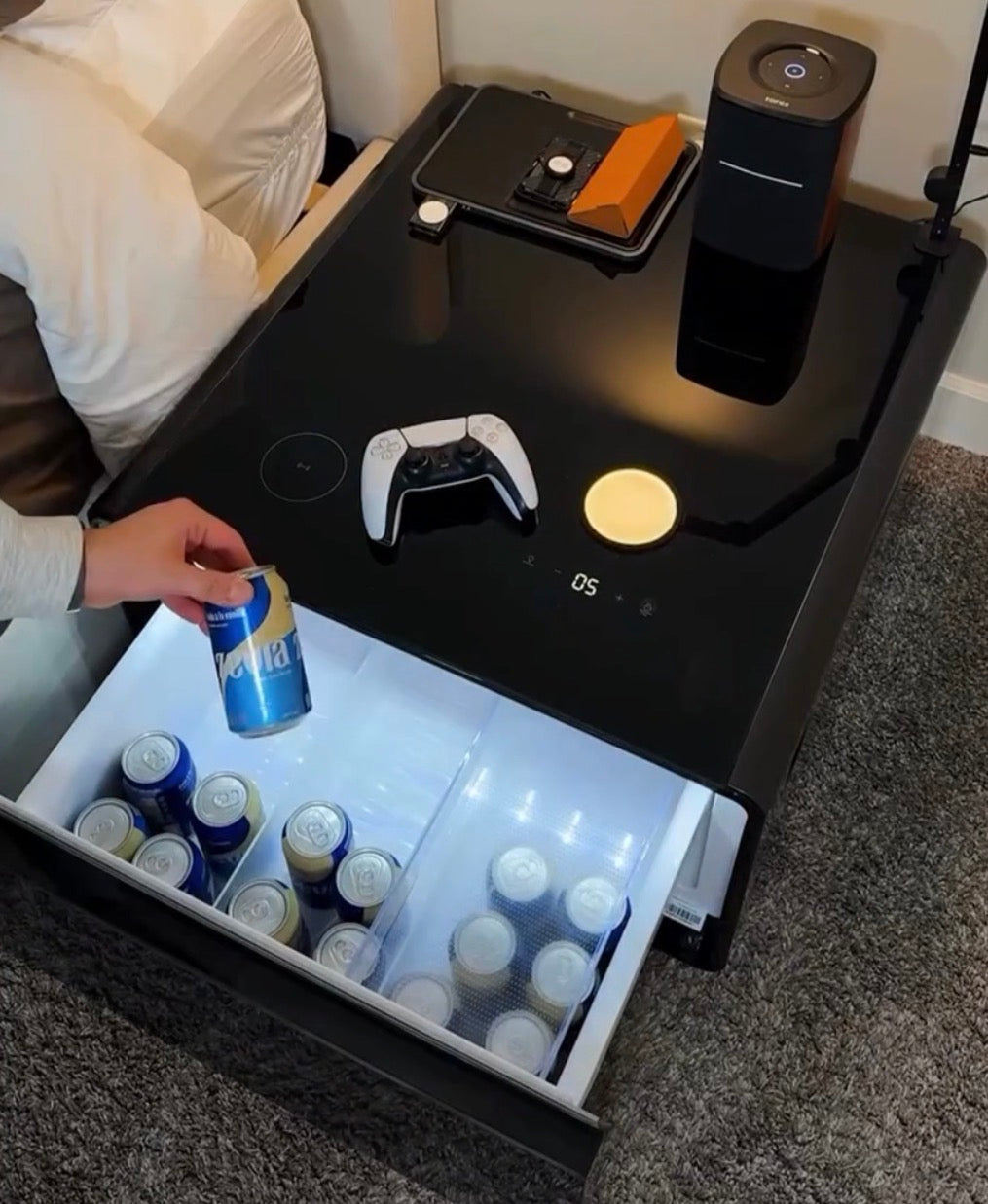 Ein moderner Couchtisch, der Design und intelligente Funktionen vereint.